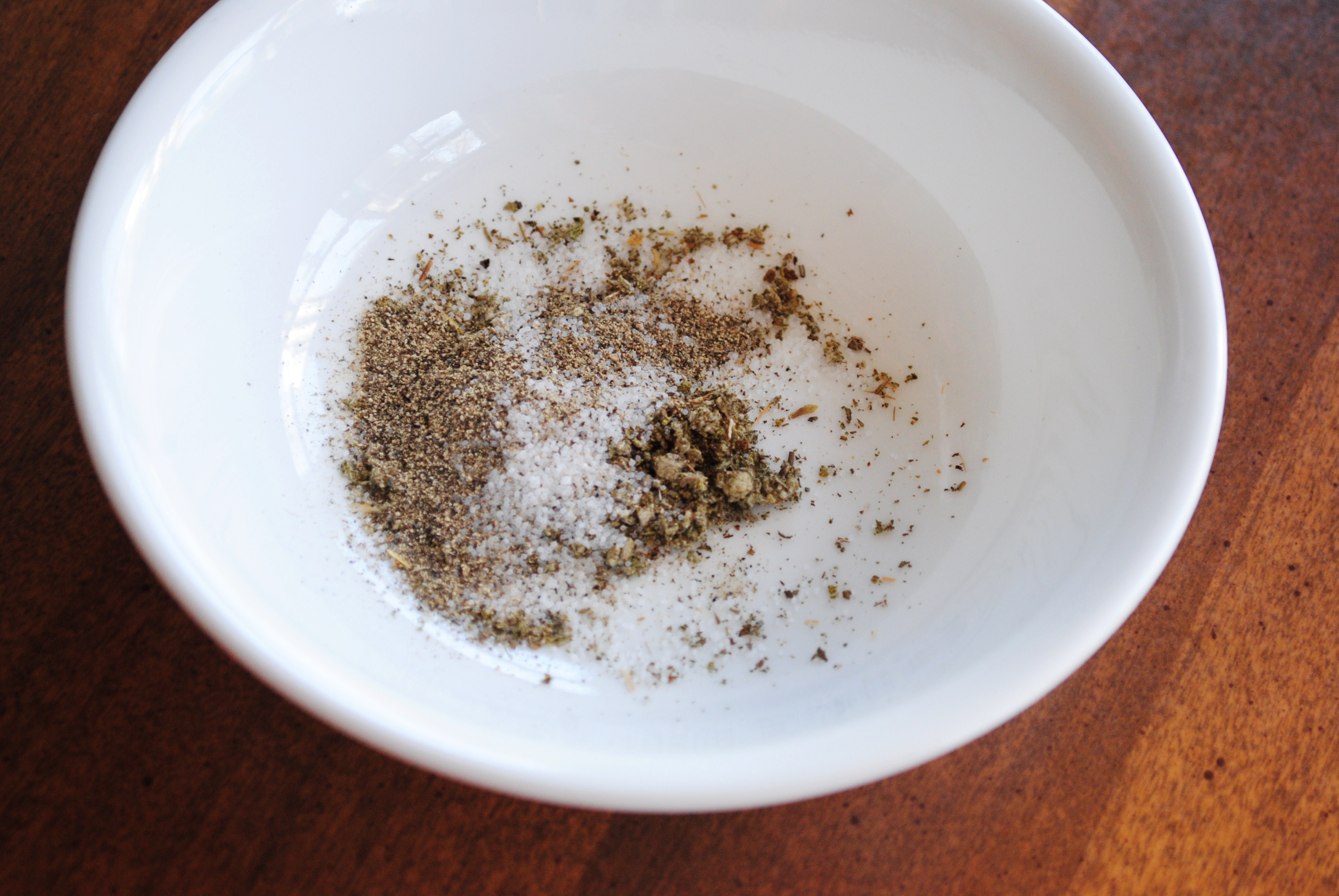 Rub the seasonings onto the pork, then carefully pour the water around it.