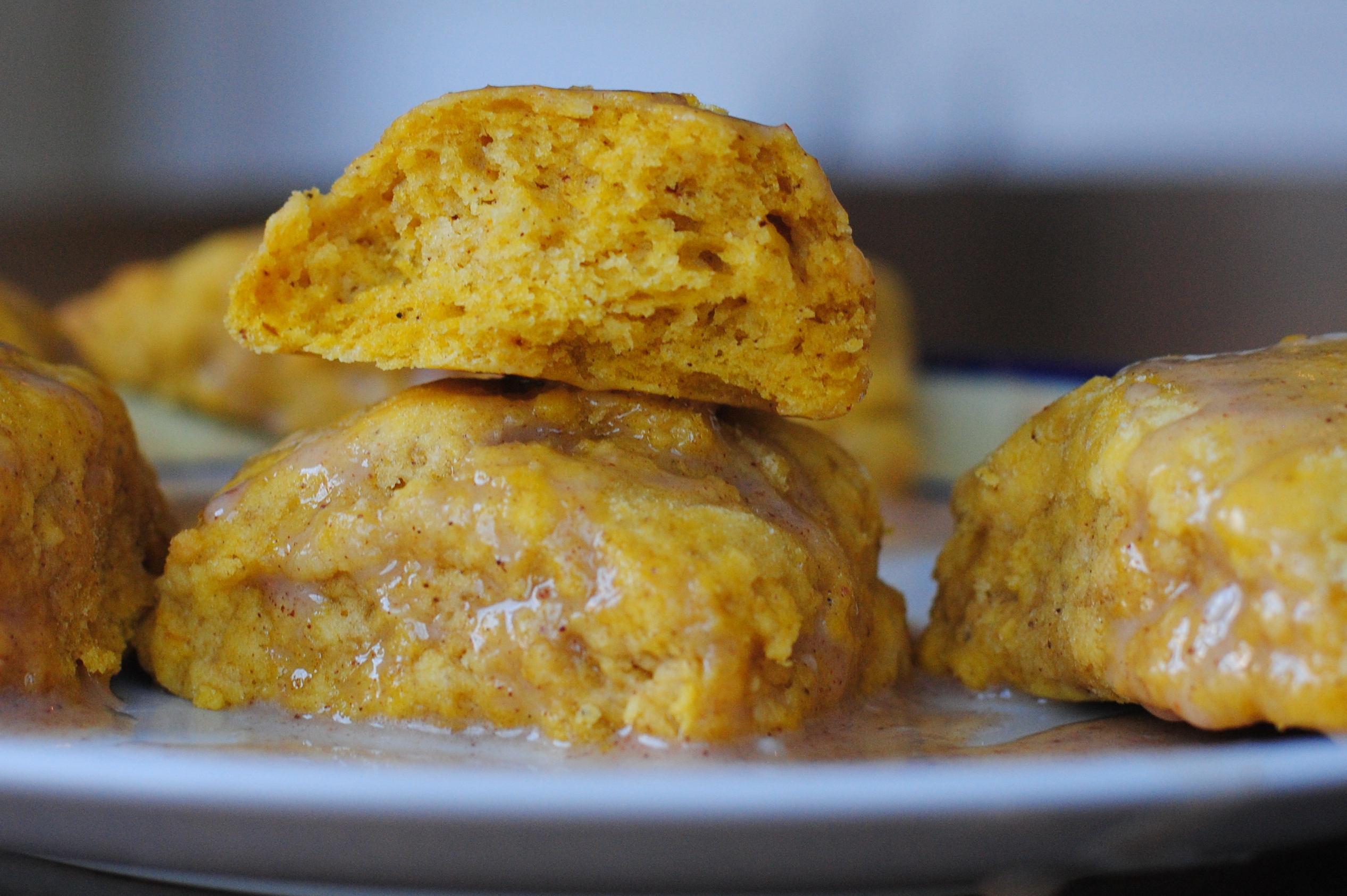 These are one of few scones that taste better the second day, I think it’s because the pumpkin flavor comes through more fully.  You could also wait and glaze them the second day.  They are also delicious warmed in the microwave for a couple seconds.