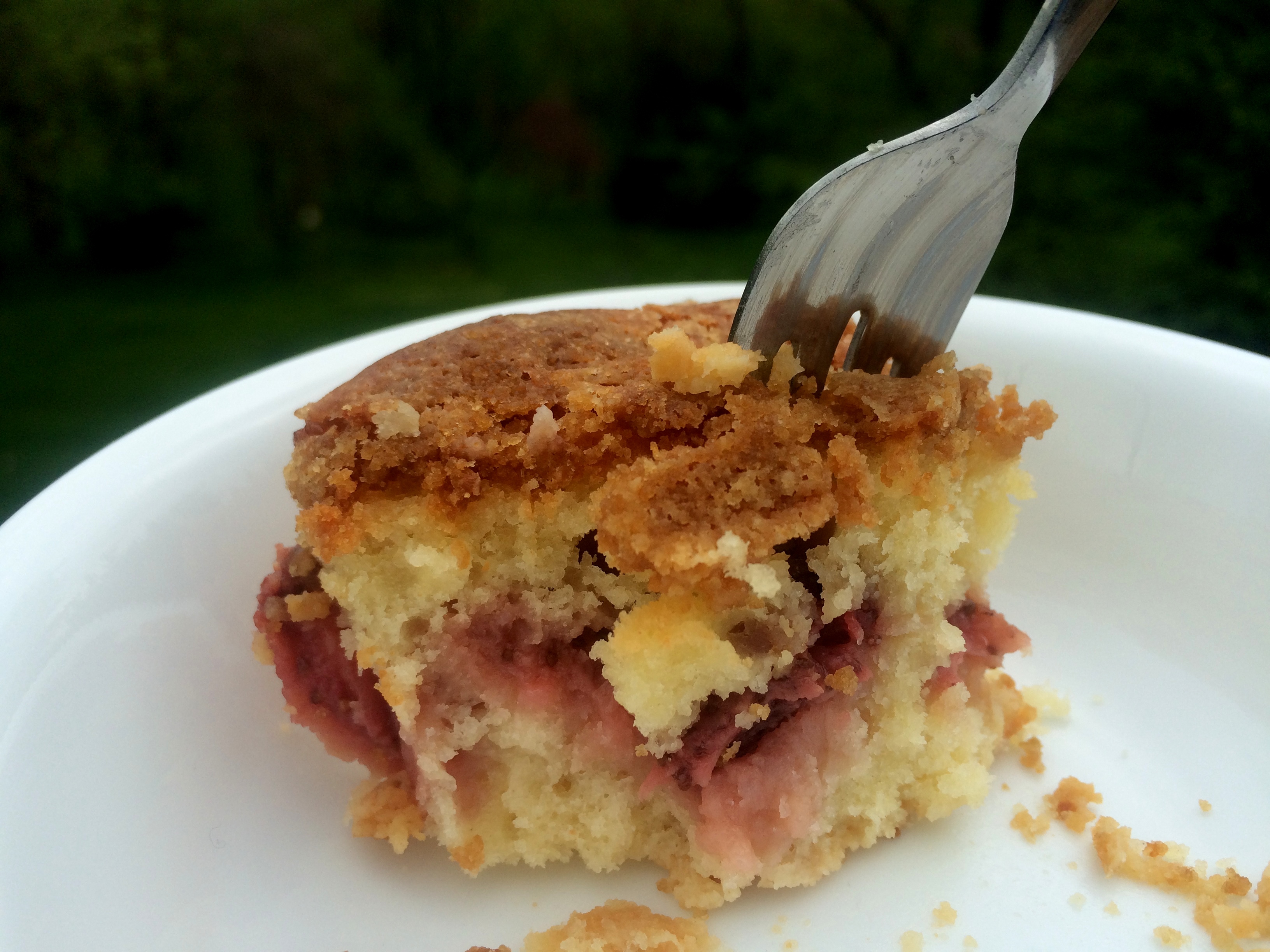 Combine streusel ingredients and cut butter into mixture with pastry blender until crumbly. Sprinkle streusel over batter. Bake at 350 degrees for about 1 hour. Strawberries should be bubbling and a toothpick should come out clean.