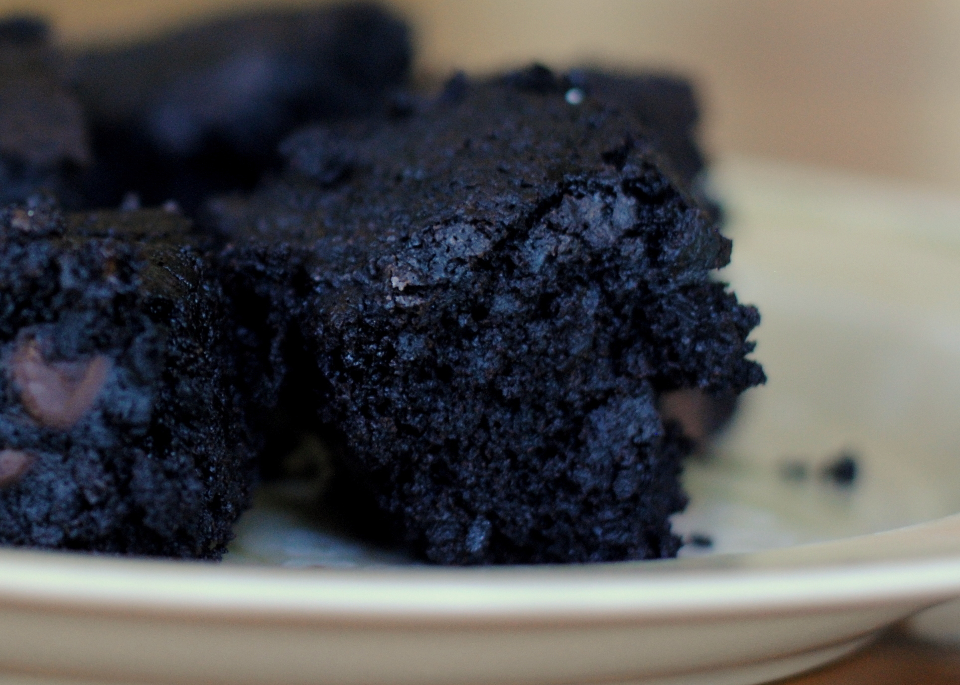 I really didn’t want to call these zucchini brownies. I didn’t want any preconceived ideas preventing anyone from making these! I like zucchini brownies, but sometimes they are too mushy, or have a weird texture, or you can taste the zucchini. I don’t mind so much that you can taste the zucchini, but some people do. However, these brownies taste like regular brownies, you cannot tell there is a stitch of vegetable in them. I mainly made these because I’m on a zucchini kick and figured I should use up my abundance! And really brownies sound good pretty much any day of the week. (I apologize for these horrible pictures, these dark brownies were hard to photograph!)